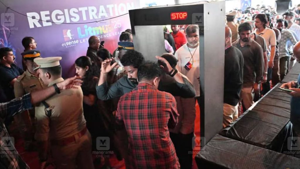 കടവന്ത്രയിലെ രാജീവ് ഗാന്ധി ഇൻഡോർ സ്റ്റേഡിയത്തിൽ തോക്ക് പിടിച്ചെത്തിയയാളെ തുടർന്ന് ‘എസെൻസ് ഗ്ലോബൽ ലിറ്റ്മസ് 25’ സ്വതന്ത്ര ചിന്താ സമ്മേളനം താൽക്കാലികമായി നിർത്തിവച്ചു. ഉദയംപേരൂർ സ്വദേശിയാണ് തോക്കുമായി എത്തിയതെന്ന് റിപ്പോർട്ട്. സംഭവത്തിന് പിന്നാലെ പൊലീസ് സ്റ്റേഡിയം ഒഴിപ്പിച്ച് വിശദമായ പരിശോധന നടത്തി.