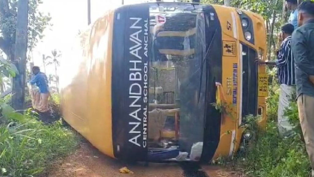 അഞ്ചലിൽ സ്‌കൂൾ ബസ് മറിഞ്ഞ് അപകടം; കുട്ടികൾക്ക് പരിക്ക്