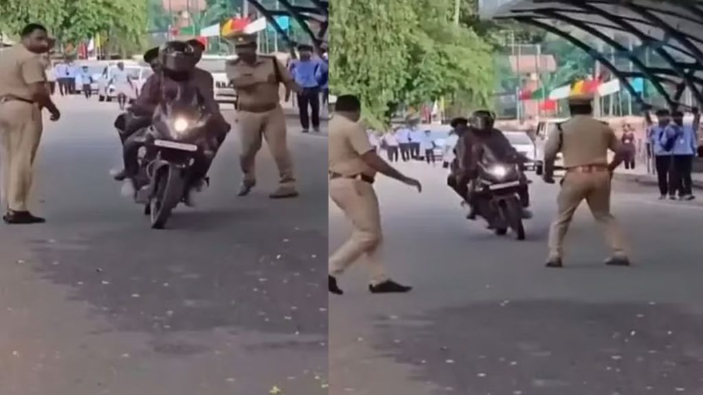 സംഭവത്തിൽ പോലീസ് അന്വേഷണം ആരംഭിച്ചു. ബൈക്ക് നിരീക്ഷണത്തിലാണെന്നും ഉടൻ തന്നെ യുവാക്കളെ കസ്റ്റഡിയിലെടുക്കുമെന്നും പാലാ സി.ഐ. അറിയിച്ചു.