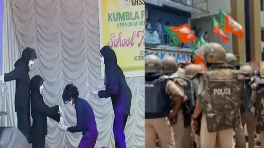 നിർത്തിവെച്ച കുമ്പള ഹയർ സെക്കൻഡറി സ്കൂളിലെ കലോത്സവം വീണ്ടും ആരംഭിച്ചു; ബി.ജെ.പി പ്രവർത്തകരുടെ മാർച്ച് സ്കൂളിലേക്ക്