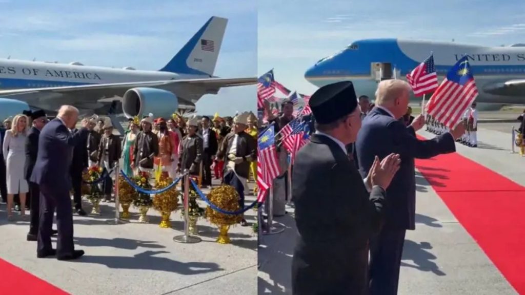 ആസിയാൻ ഉച്ചകോടിക്ക് മലേഷ്യയിൽ എത്തിയ യുഎസ് പ്രസിഡന്റ് ഡൊണാൾഡ് ട്രംപ് നൃത്തം ചെയ്യുന്നത് സാമൂഹിക മാധ്യമങ്ങളിൽ വൈറലായി. എയർ ഫോർസ് വൺ വിമാനത്തിൽ ക്വാലാലംപുര് അന്താരാഷ്ട്ര വിമാനത്താവളത്തിൽ ഇറങ്ങിയ ട്രംപിന് മലേഷ്യൻ അധികൃതരും പ്രധാനമന്ത്രി അന്വര് ഇബ്രാഹിം, കാബിനറ്റ് മന്ത്രിമാർ, മുതിർന്ന ഉദ്യോഗസ്ഥർ ചേർന്ന് ഉഷ്മള സ്വീകരണം നൽകിയിരുന്നു. സൈനിക ബഹുമതികൾക്കുശേഷം, ട്രംപ് പരമ്പരാഗത മലേഷ്യൻ നർത്തകരോടൊപ്പം ചുവടുവെച്ചു.